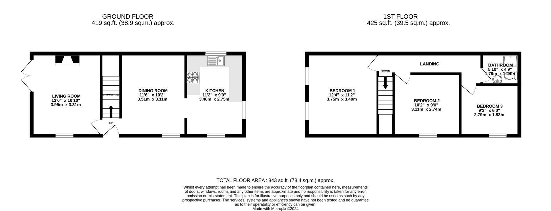 Adjacent to the dining room, the fitted kitchen boasts ample worktop and storage space with integrated gas hob and electric oven. Convenient space is provided for free standing appliances alongside plumbing for an automatic washing machine and dishwasher. Windows overlook the front and side aspects.