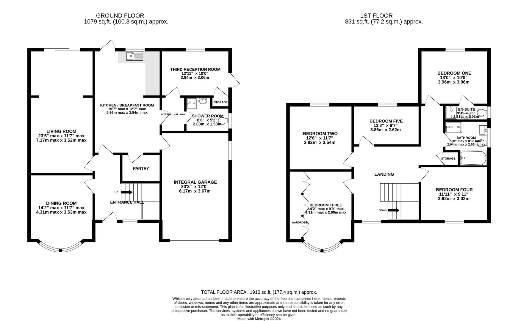 Spacious landing area allows natural light into the area via the window overlooking the front aspect. Access from the landing is provided to all five double bedrooms, family bathroom, built-in airing cupboard and to the loft above accessed via drop down ladder.