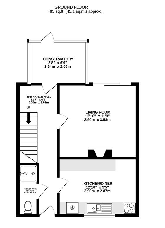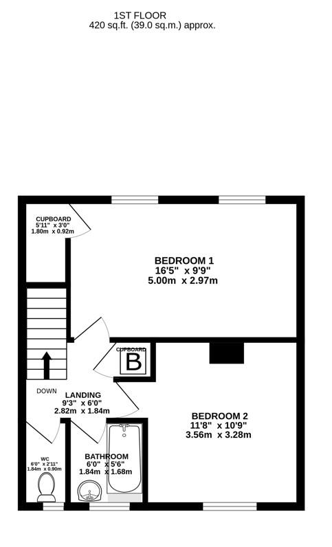 Two uPVC double-glazed windows to rear elevation. Over-stairs storage cupboard. Radiator.
