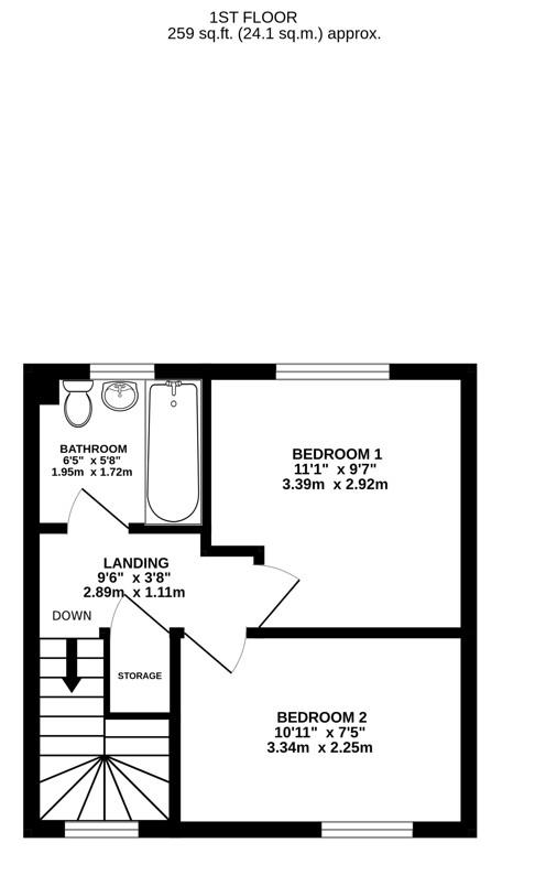 uPVC double-glazed window to front elevation. Low-level WC, wash hand basin and bath with shower over. Radiator.