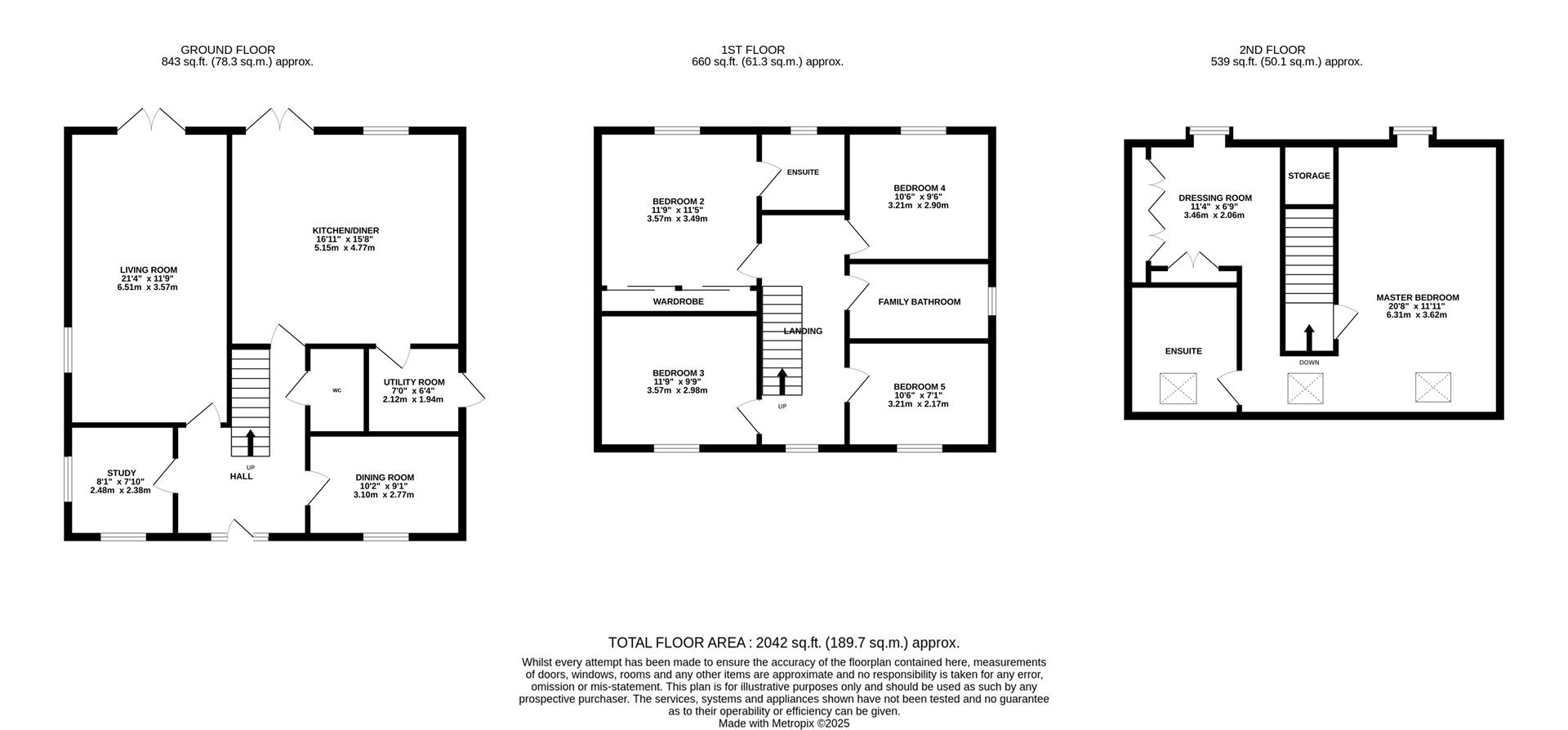 Doors leading off to the four bedrooms, family bathroom and stairs to the second floor.