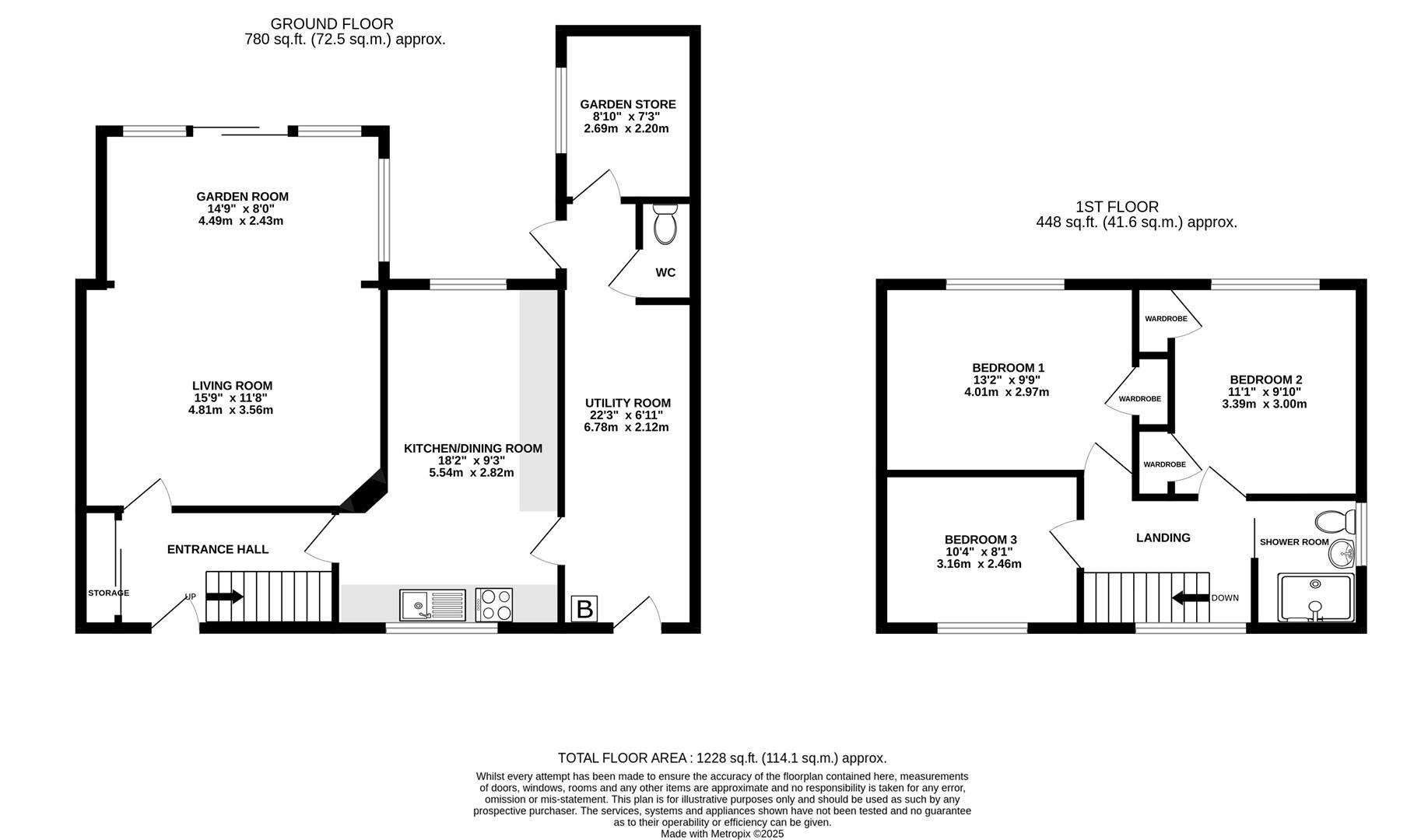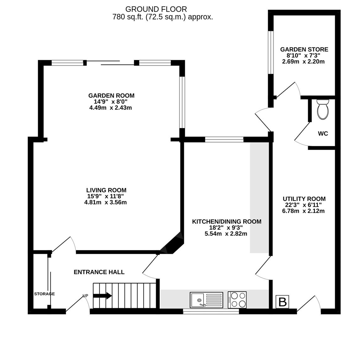 Doors to front and rear gardens, power and light, plumbing and space for washing machine, wall-mounted gas boiler.