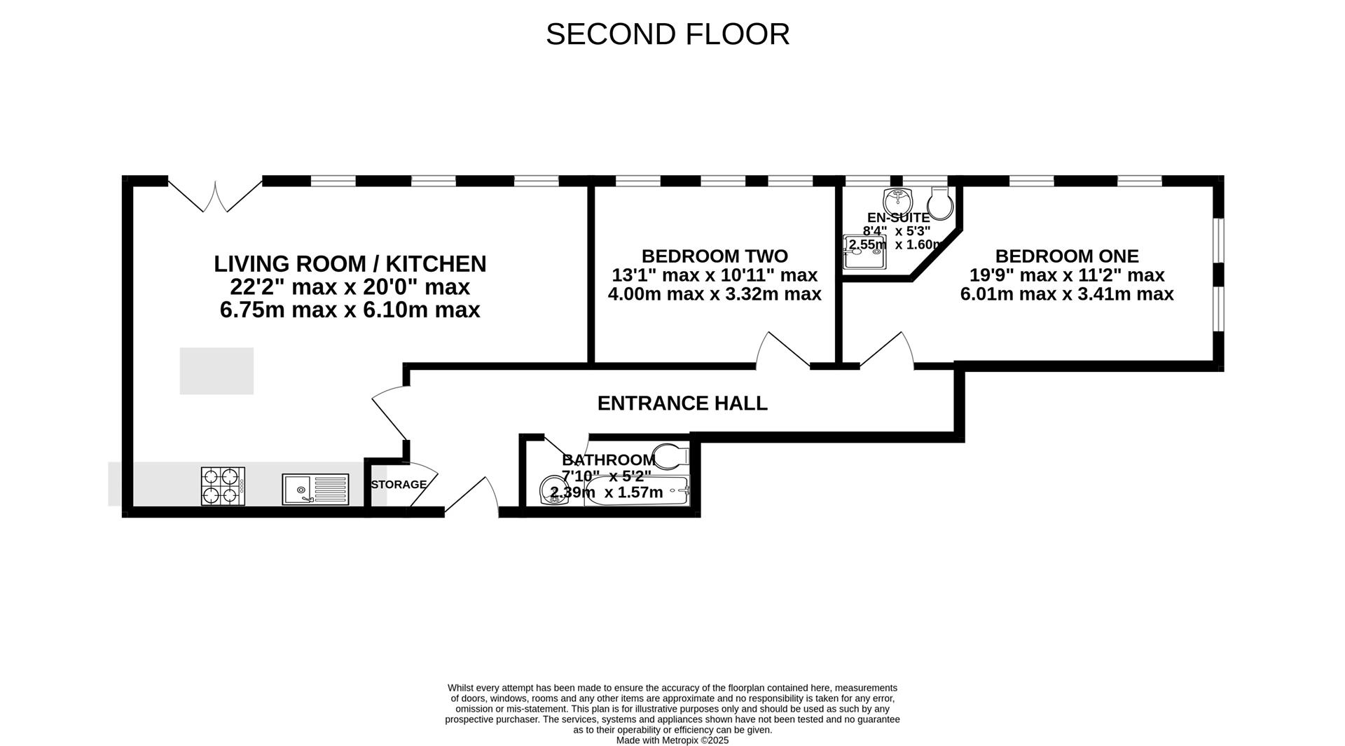Spacious hallway provides access to the living room, both bedrooms, family bathroom and to a built-in storage cupboard.