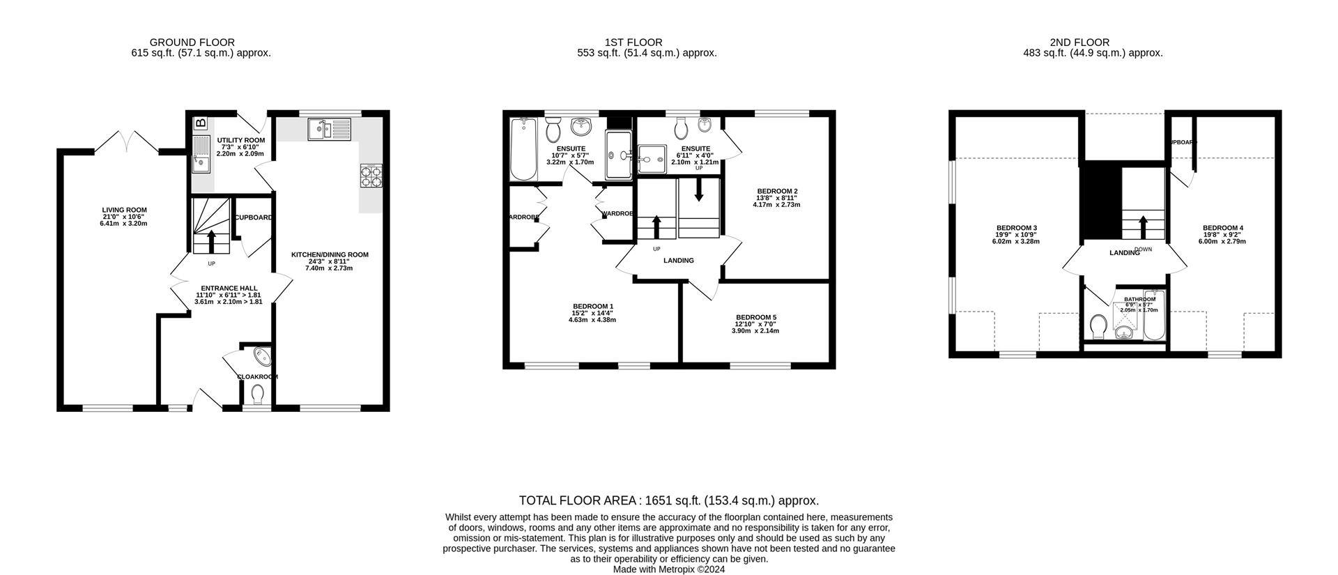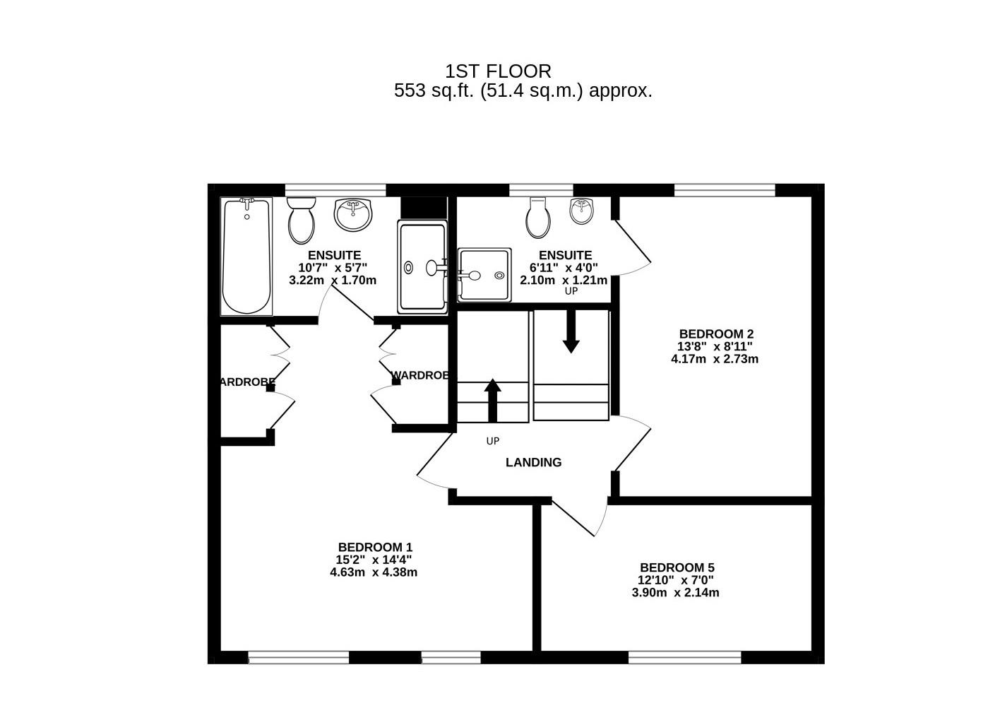 Double glazed obscure window to rear elevation, shower cubicle, bath with shower attachment, WC, wash hand basin, tiled splash backs and flooring, heated towel rail, extractor fan.