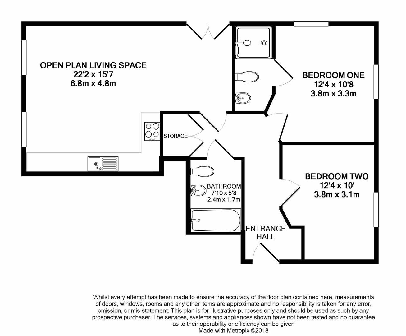 Generously sized living area with dual aspect windows offering enviable views across the main water basin and towards May Hill. There is also a section which lends itself well to a dining area with Juliet balcony. The kitchen benefits from ample storage in a range of floor and eye level units accompanied by integrated appliances to include undercounter fridge and freezer, electric oven, dishwasher and four ring electric hob and extractor over.