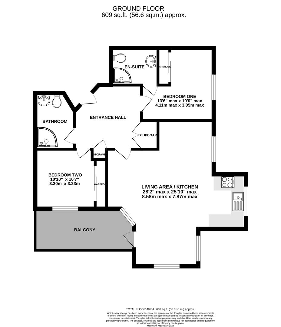 Open plan kitchen and living area offers the flexibility to provide convenient space for lounge, dining and office areas if required. Multiple windows to front and side aspects offer views towards May Hill and over the Orchard Square in the heart of the Docks. Ample worktop and storage space is provided in the kitchen area alongside integrated appliances to include double electric oven, hob, dishwasher, fridge and freezer. Access is also provided to the private south facing balcony.