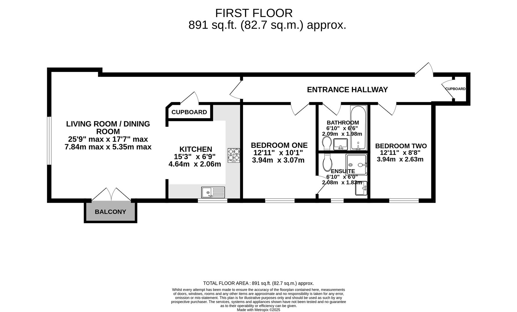 Benefitting from being a great size, the living dining room provides a versatile space with French doors opening onto the balcony. Sash window to side aspect.