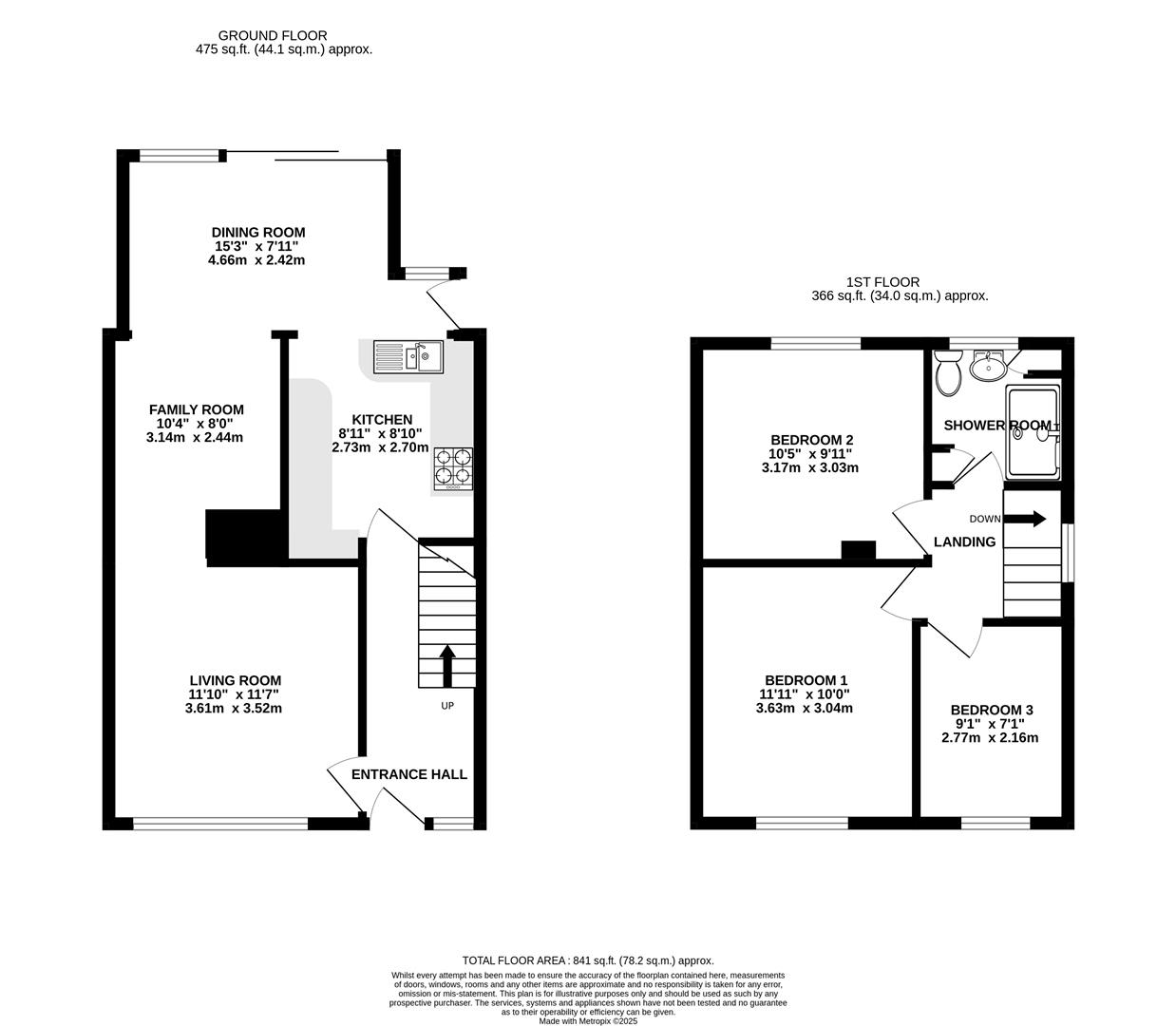Double-glazed obscure window to rear elevation, WC, washhand basin, shower cubicle, two cupboards, radiator.