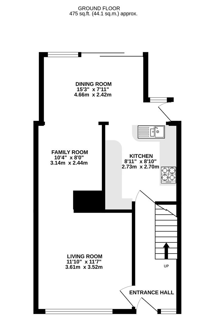 Double-glazed window to front elevation, stairs to first floor, door to kitchen, door to;