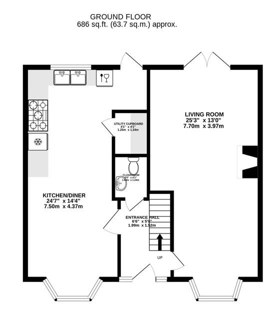 uPVC double-glazed door and uPVC double-glazed windows either side. Access to living room, kitchen/diner, cloakroom and stairs rising to the first floor. Radiator.