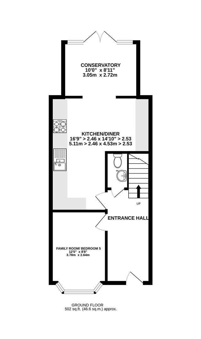 Double glazed with French doors leading out into the garden, obscure windows to side elevations, and roof light, tiled flooring.