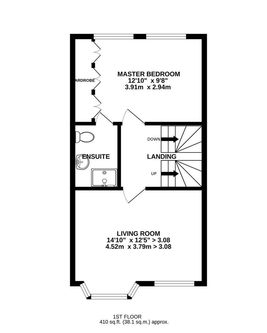 Three double-glazed windows to front elevation in a bay, radiator, and laminate flooring.