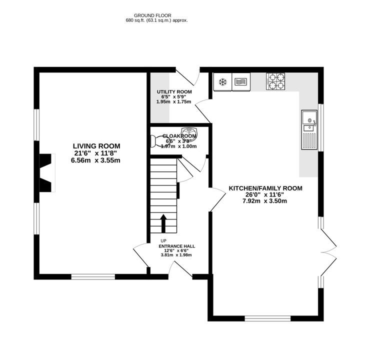 Composite door to entrance hall. Access to living room, kitchen/family room, cloakroom, under-stairs storage cupboard and stairs rising to the first floor. Radiator.