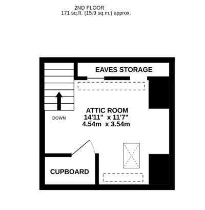 Double-glazed Velux window. Eaves storage and storage cupboard. Radiator.