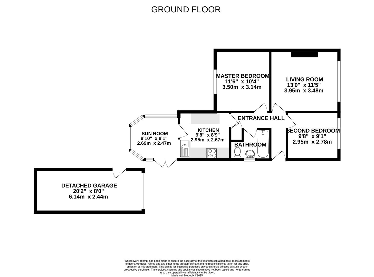 Stepping inside, the entrance hall provides access to the living room, kitchen, bathroom and two double bedrooms.