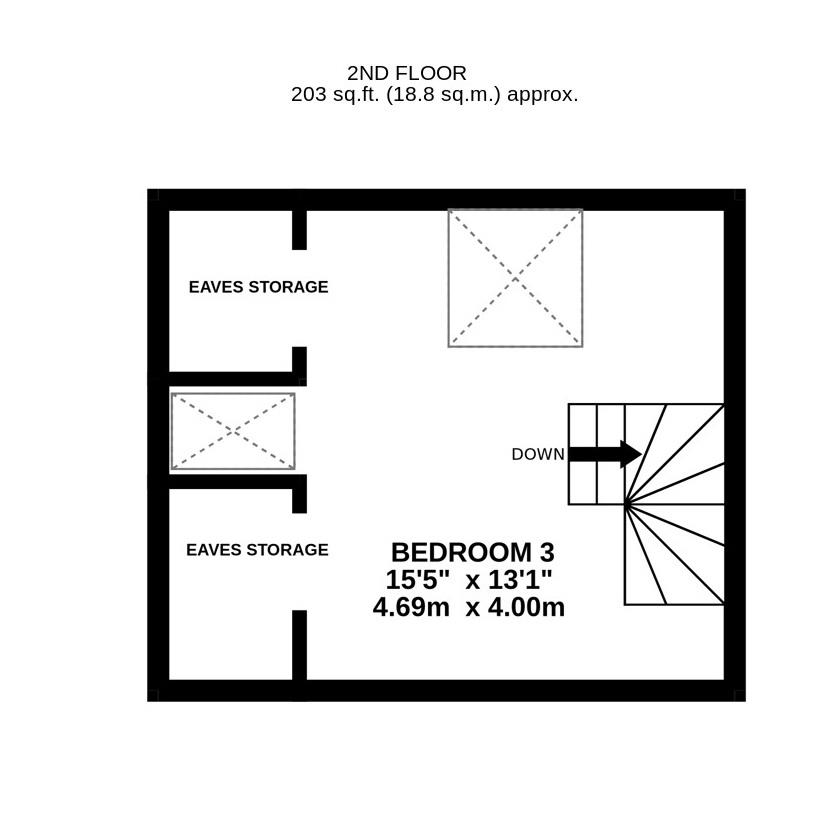 Double-glazed window to side elevation, Velux window, radiator, eaves storage.