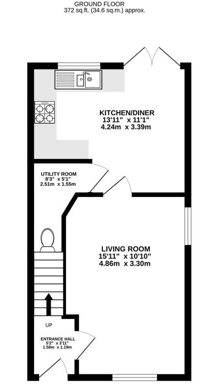 Double-glazed door to entrance hall. Access to living room and stairs rising to the first floor. Radiator.