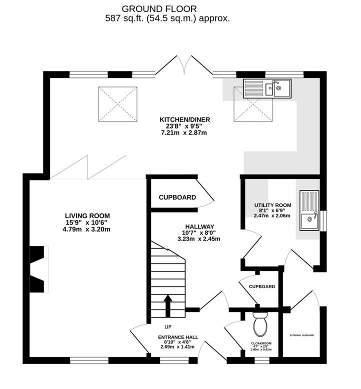 Door leading from the entrance hall. Doors to kitchen, utility room and two storage cupboards. Radiator.