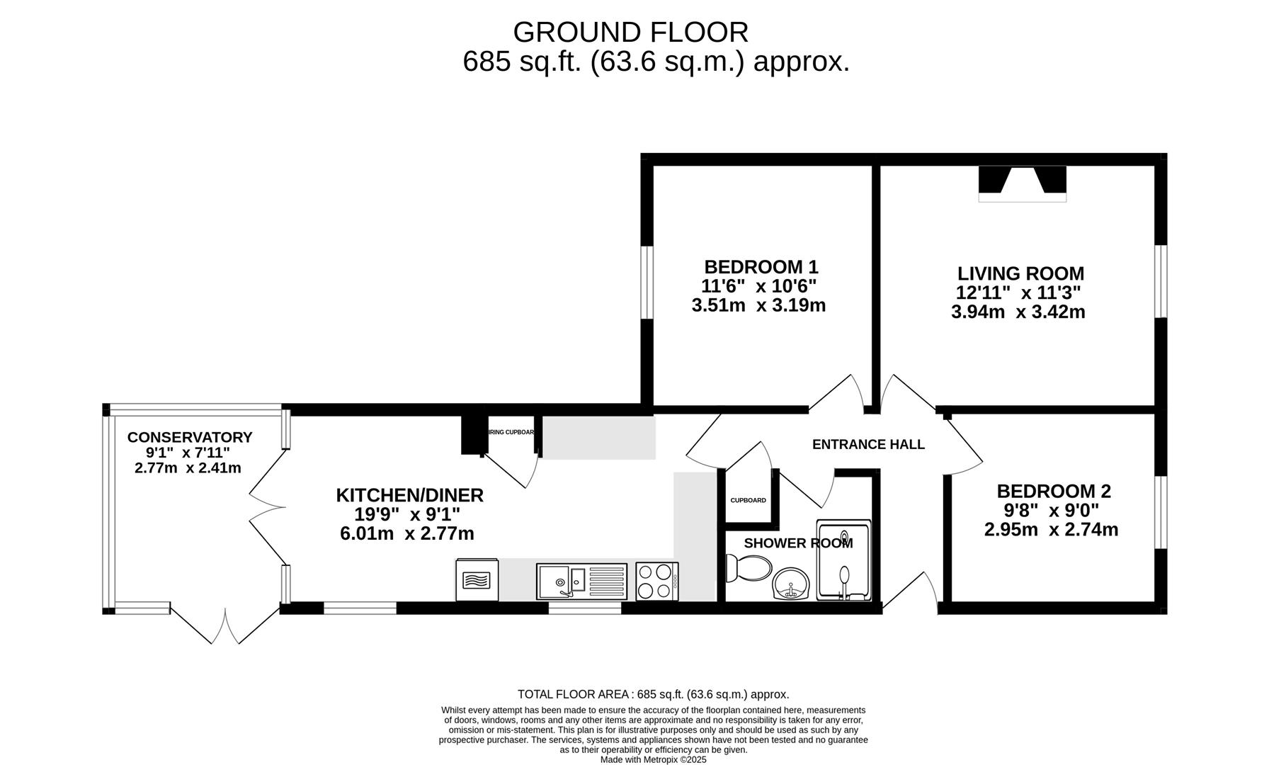 uPVC double-glazed door to entrance hall. Access to all accommodation. Storage cupboard. Radiator.