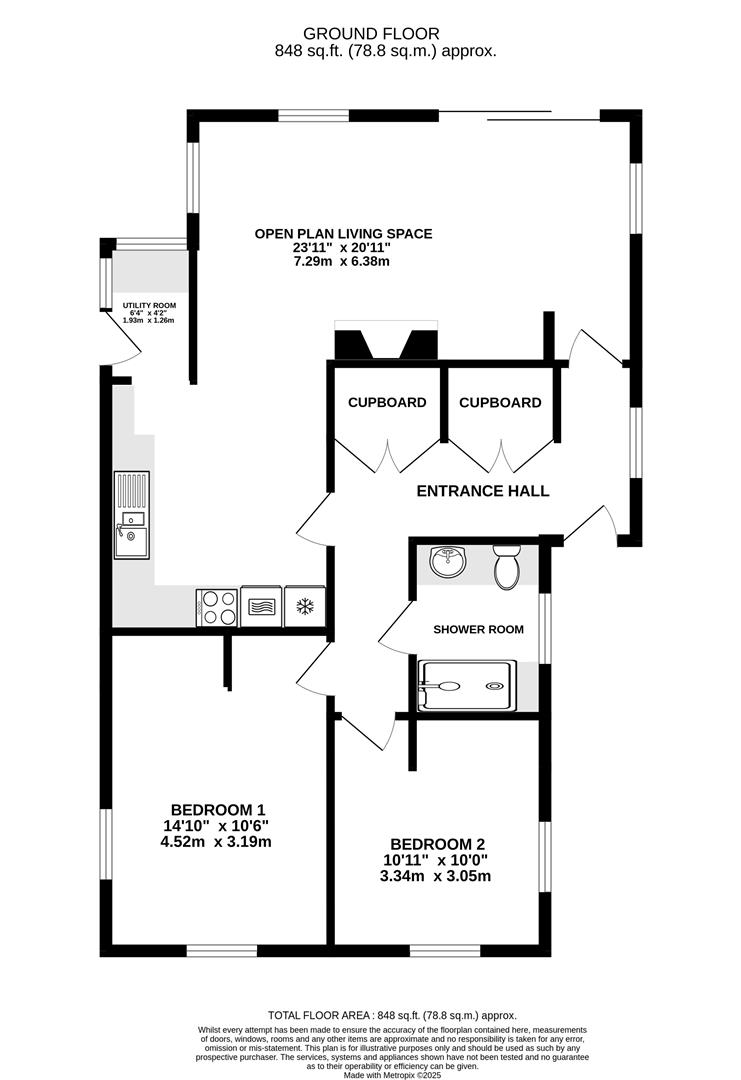 Composite door to entrance hall and uPVC double-glazed window to side elevation. Access to all accommodation and two sizeable storage cupboards. Two radiators.